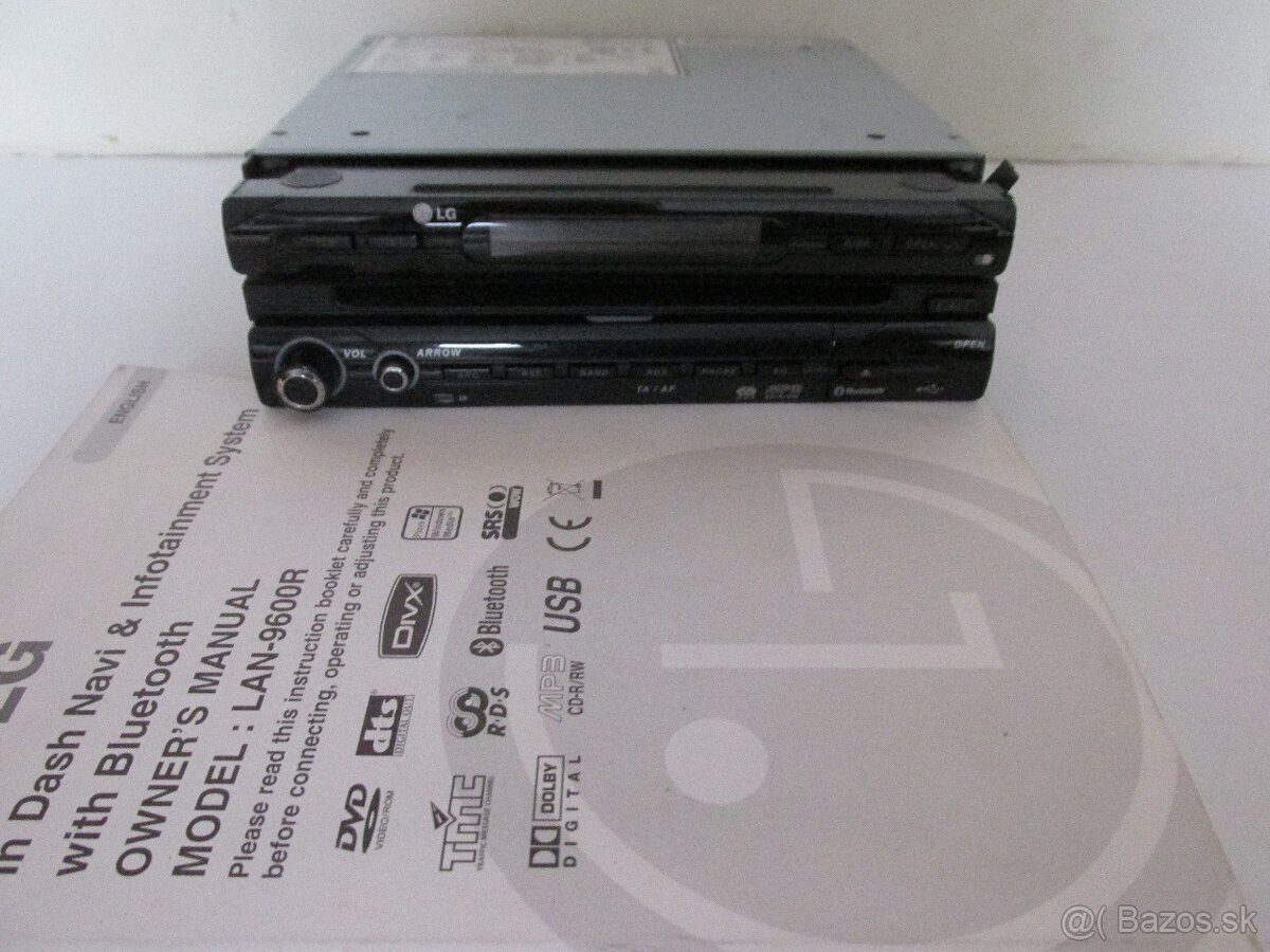 Predam multimedialny navigačny system do auta lg lan 9600r.Kratko použivany ako autoradio , plne funkčny. Parametre a vlastnosti - prehrava CD , DVD , MP3 , WMA a Divx disky, bluetooth , USB port , čitačka kariet. Vystupny vykon 50W , digitalny AM/FM tuner,vnutorna pamet 2 GB . Predavam spolu hlavnu aj skrytu jednotku. K tomu darujem všetky potrebne kable na montaž do auta + antena.Cena je dohodou.Viac info na č.t.0950647786