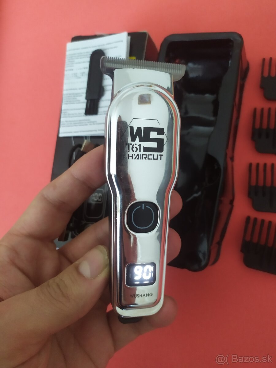 Predám nový elektrický strihací strojček s kompletným vybavením potrebným na profesionálne strihanie a modelovanie vlasov a brady s LED indikátorom stavu batérie.