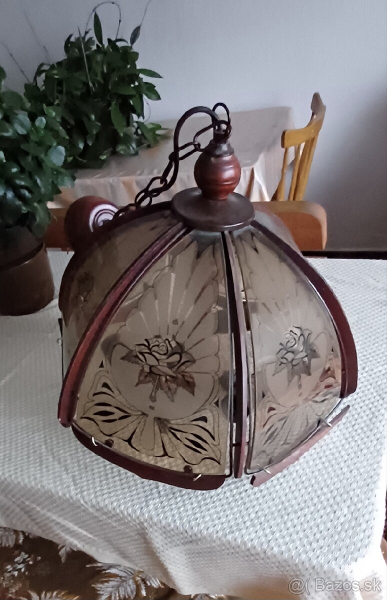 Predám pekný retro luster -závesný stropný vo veľmi dobrom, kvalitnom, zachovalom stave s kombináciou dreva a skla.