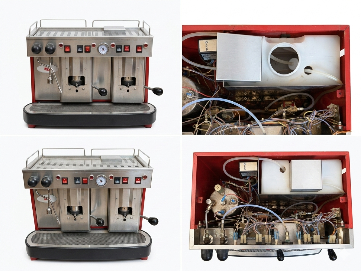 Tento taliansky klasik (LaPiccola Cecilia) si dal 10-ročný „šlofík“ v sklade a teraz hľadá niekoho, kto mu kompletným repasom vráti jeho zašlú slávu. Pôvodne sme si ho chceli vymazliť pre seba, ale na našu linku je to jednoducho priveľký „macek“, tak dávame šancu niekomu, kto ocení fakt, že nový takýto stroj stojí okolo 2 000 €. Ak ste domáci majster a nebojíte sa trochu si vyhrnúť rukávy, za symbolických 300 € môžete mať doma profesionálnu mašinu, ktorá vám bude robiť kávu dlhé roky.