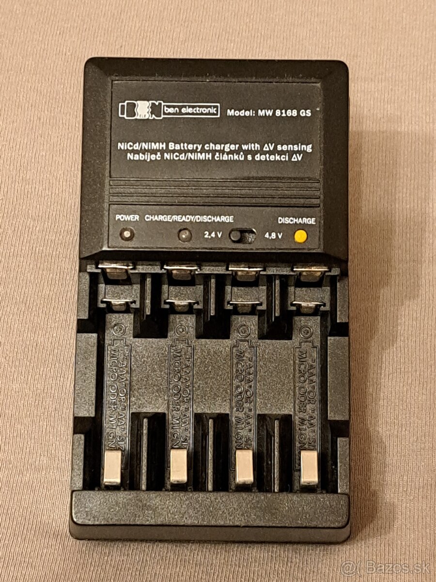 Predám nabíjačku pre všetky druhy akumulátorov (Ni-Cd, Ni-Mh) v rozmeroch AA alebo AAA, nabíja 2 ks. alebo 4 ks. bateriek. Funkcia automatického vybitia a následne auto nabitia na plnú kapacitu, potom udržiavací režim. S ochranou proti prebíjaniu. Najlepšia je funkcia vybíjania (oživí aj staršie baterky na plnú kapacitu). Cena 10 Eur alebo Dohodou