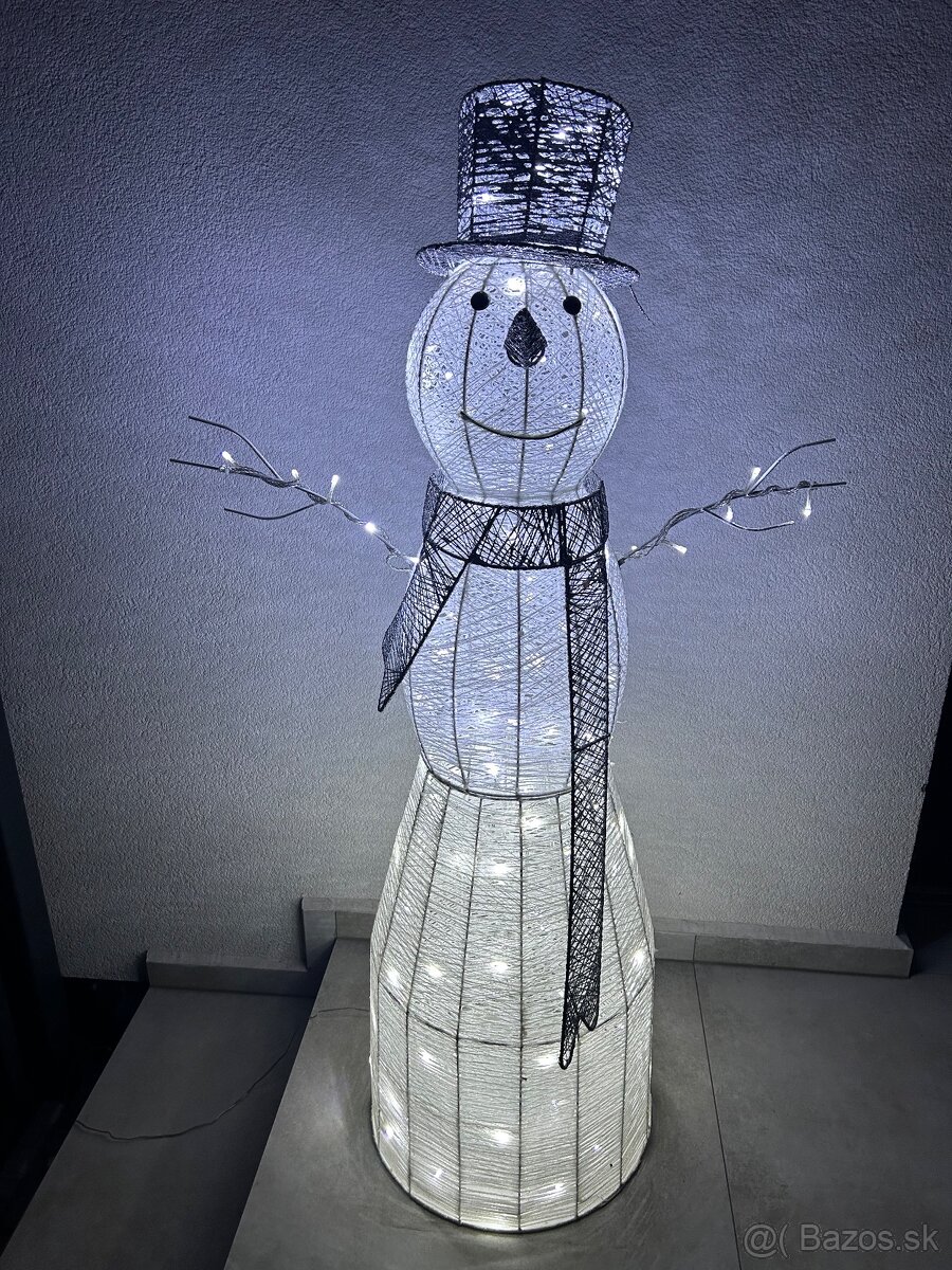 Predam vianocne osvetlenie - SNEHULIAK, 124cm, studene LED svetla, pripojenie 220V - časovač.