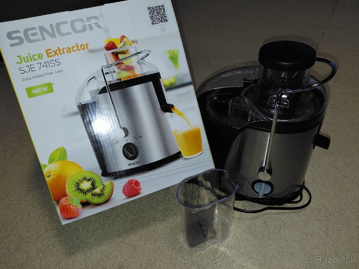 Odšťavovač Sencor SJE 5050SS - [6.3. 2026]Predam maximálne 5x použitý odšťavovač. Plne funkčný. Má jeden škrabanec na plaste. Mysleli sme, že budeme odšťavovať aj na záhrade. Máme iný, tento je nevyužitý. Bloček by som možno našiel, kupovany 04.11.24 v mall.sk. Najlepšie osobne Poprad. Na sms neodpovedám. Na dobierku neposielam.