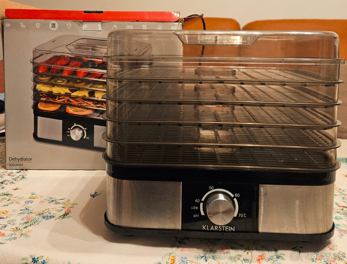 Predám kvalitnú sušičku potravín nemeckej výrobyna ovocie a hríby.Veľmi málo používaná. 5 sušiacich roštov.Cena novej 119 €, teraz 35€.
