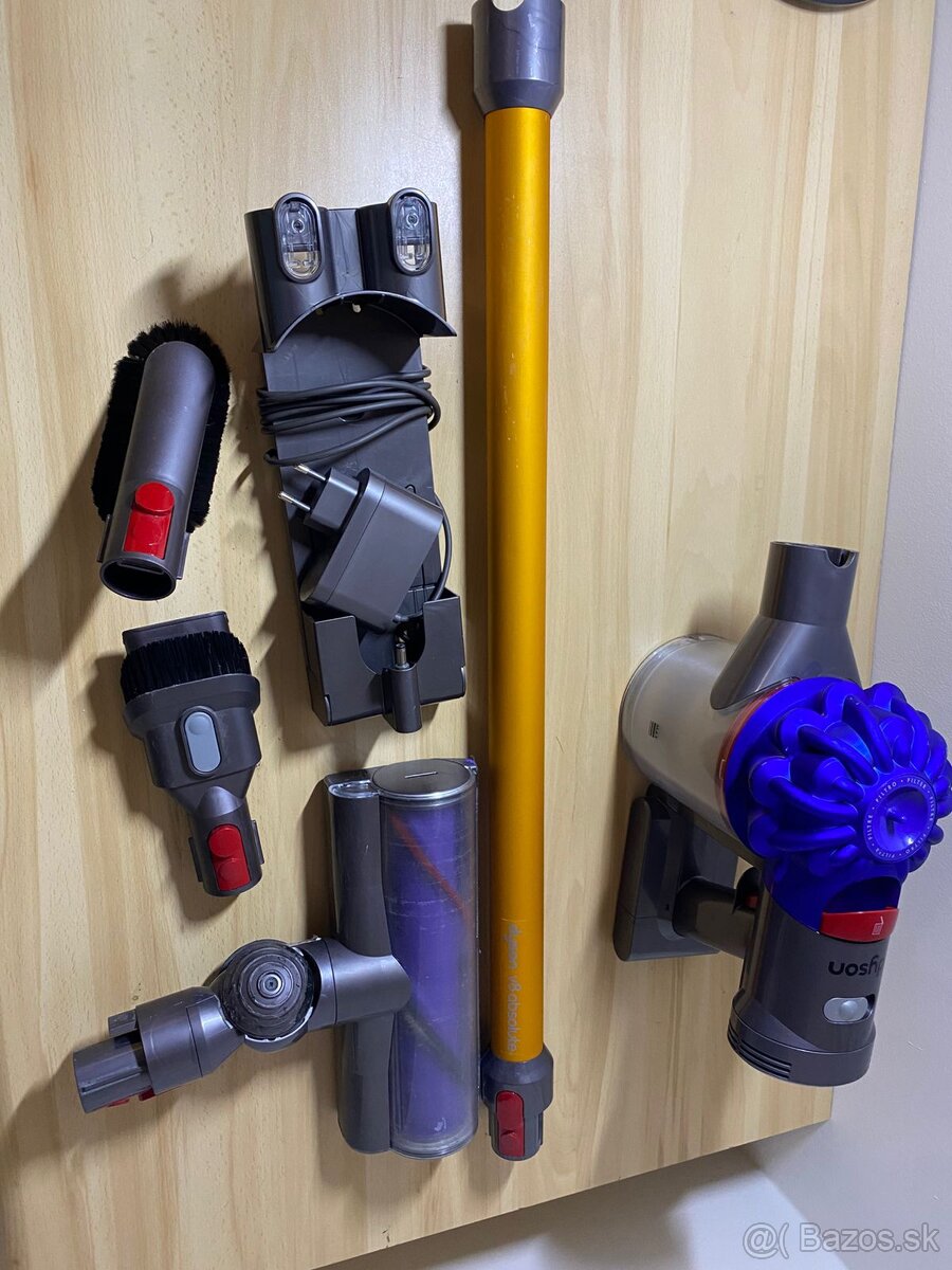 Bezvreckovy vysávač Dyson V6 - [25.2. 2026]Používaný no plne funkčný bezvreckovy vysávač Dyson V6 s vymenitelnymi nadsavcami ,nahradnou batériou a stojanom na uskladnenie