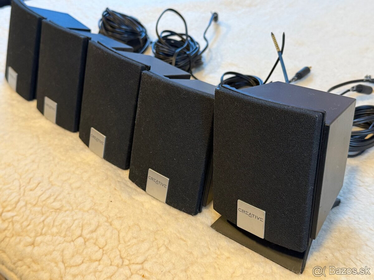 Predám sústavu reproduktorov - subwofer + 5 reproduktorov (2 predné, 2 zadné a stredový) s diaľkovým ovládaním. Výborný priestorový zvuk - pre domáce kino, počítačové hry a pod.