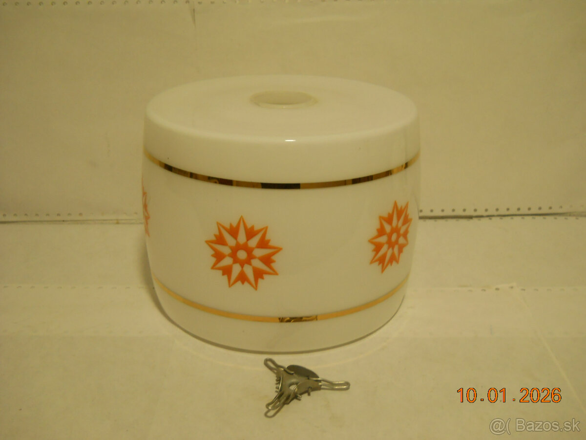 Tienidlo je z matného bieleho skla (ako mliečne sklo), výšky cca 27 cm a priemeru cca 10 cm.