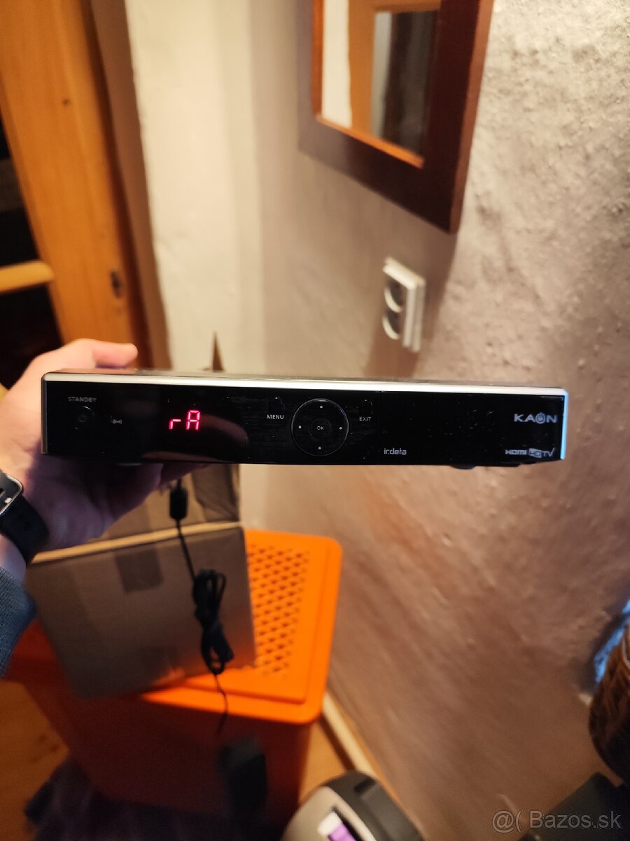 Predám tento satelitný box značky Kaon s diaľkovým ovládaním+ satelitom a držiakmi v zachovalom stave. Box za 20€, satelit za 10€.