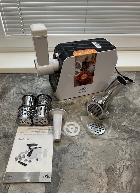 Predám mlynček na mäso ETA Ambo 3075 90000 čierny/biely, minimálne použitý, asi cca dva krát, v perfektnom stave, ponúkam za 65€, BA Podunajské Biskupice, viem doviezť cestou na Záhorie, Skalica, Trnava, Nitra, Zlaté Moravce, Levice, NZ, DS, alebo pošlem Packeta.