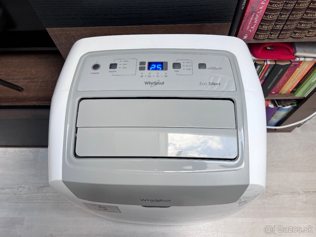 Značka Whirlpool, kupovaná nová v NAY za 439,- EUR. Vynikajúci chladiaci výkon 12000 Btu, okamžite chladí, vo vynikajúcom stave, možnosť aj odvlhčovania a fúkania, dá sa nastaviť aj intenzita fúkania aj pohyb lamely pri fúkaní. Je samozrejme hlučnejšia ako nástenná klimatizácia ale zase nič hrozné. Nám vychladila 2 izby (40 m2). Používaná len do toho času, kým sme nedali inštalovať nástennú klimatizáciu.