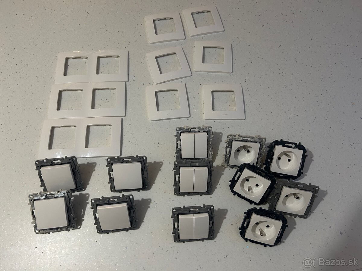 Predám sadu vypínačov a zásuviek značky Legrand Niloé v bielej farbe. Vypínače aj zásuvky sú nové, demontované z novostavby.