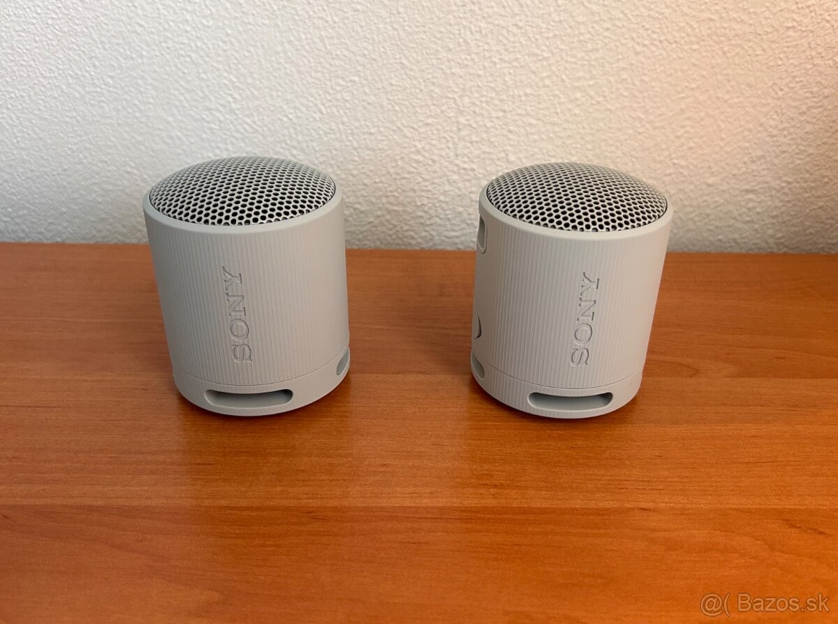 Predám 2 ks prenosných bluetooth reproduktorov Sony SRS-XB100 sivej farby, použiteľných v stereo režime, v 100 %-nom vizuálnom a technickom stave, s ochrannými púzdrami, v záruke do 07/2027.