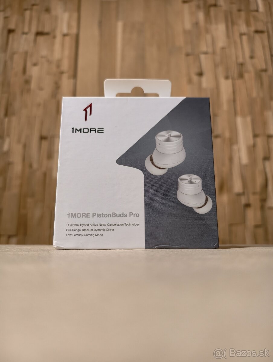 Nové nerozbalené Bluetooth TWS (True Wireless) slúchadlá 1MORE PistonBuds Pro vo farbe White. Slúchadlá ponúkajú aktívne potláčanie hluku a možnosť personalizácie zvuku pomocou aplikácie 1MORE.