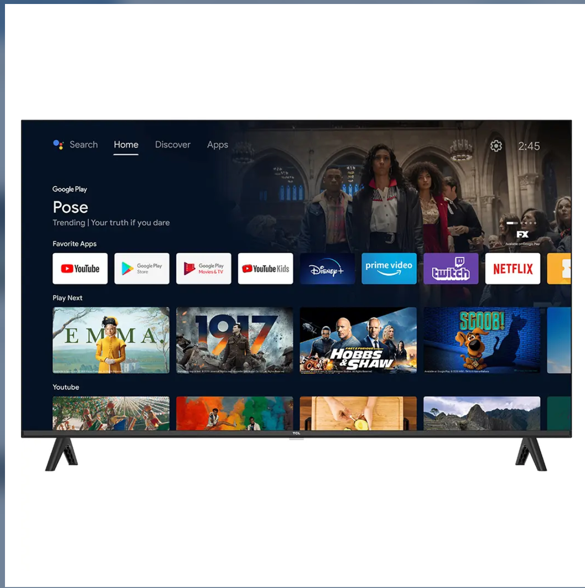 40" (100cm) Android TV LED s FHD dsplejom a s prvkami Micro Dimming, HDR10, Dolby Atmos a inými. Smart aplikácie YouTube, Netflix, ovládanie hlasom s Google Asistent.