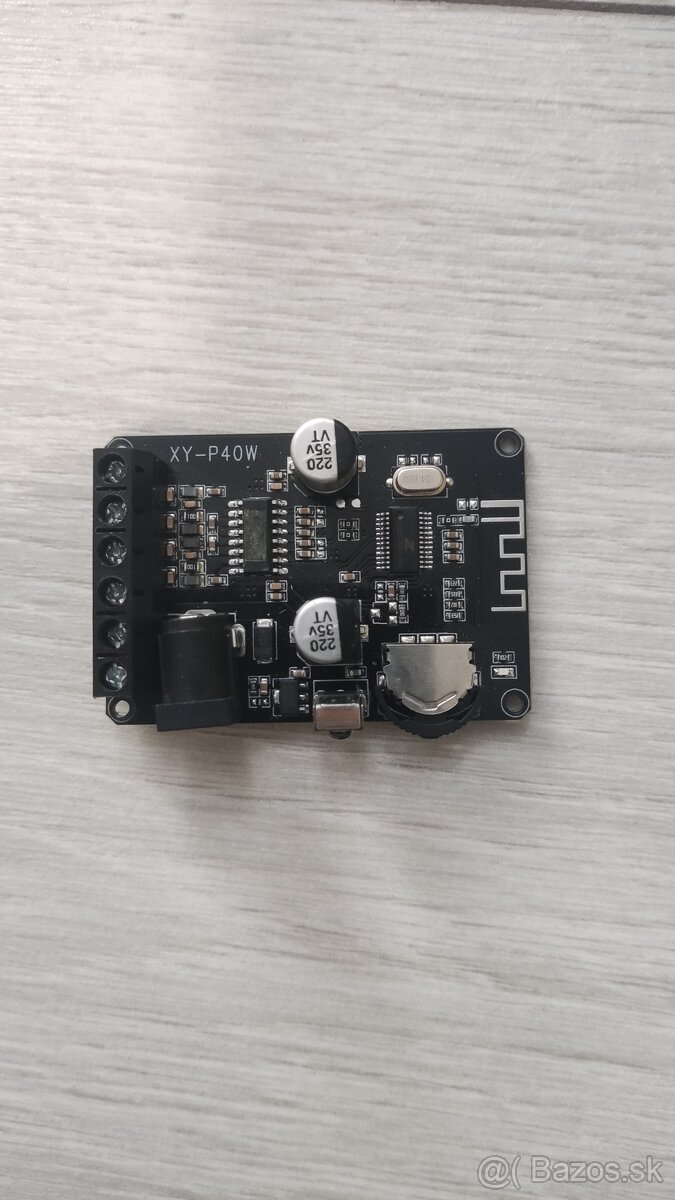 Mini Bluetooth zosilňovač XY-P40W – kompaktný audio zosilňovač s Bluetooth pripojením. Výkon 2×40 W, napájanie DC 9–24 V. Vhodný k reproduktorom, PC, TV alebo DIY audio projektom. Stav: ako nový / plne funkčný.
