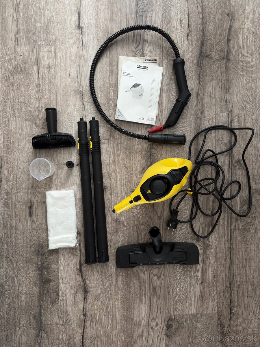 Predám parný čistič Kärcher SC1 Premium s podlahovým setom. Použitý iba raz, plne funkčný, bez akýchkoľvek problémov. Následne bol odložený v komore a nevyužívaný.