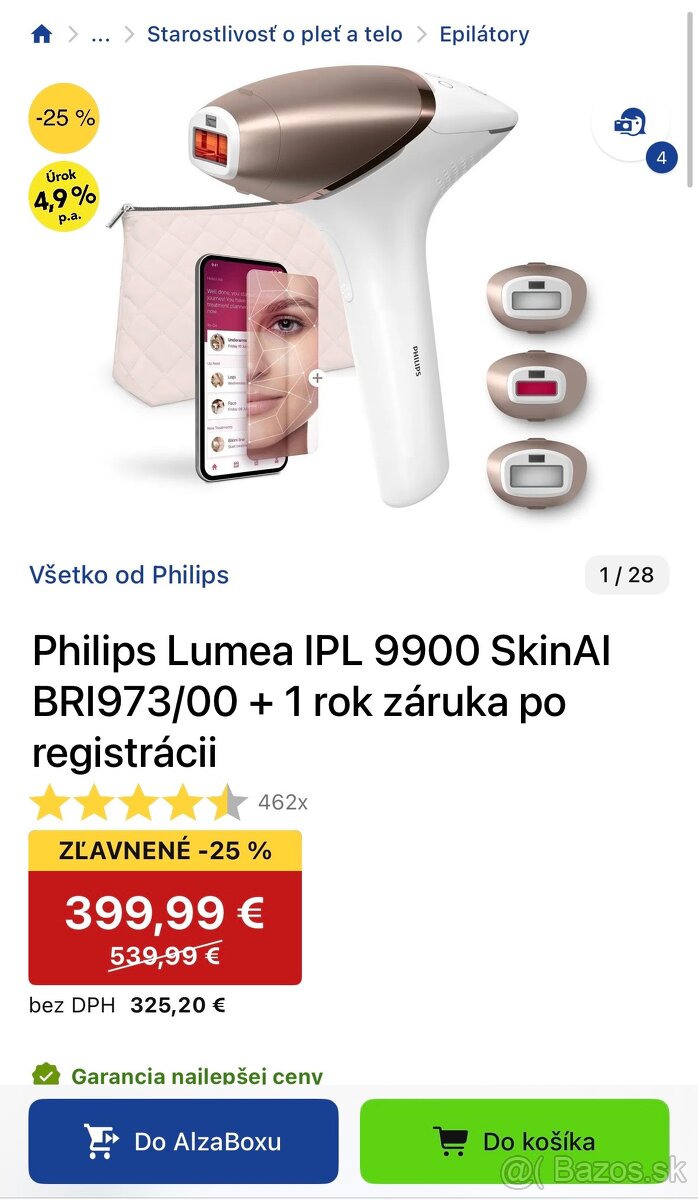Philips Lumea Series 9900 SkinAI /BRI 976/00 - [17.3. 2026]Predám Philips Lumea Series 9900 SkinAI ešte v záruke ako nový. Bez krabice. 4 nadstavce.