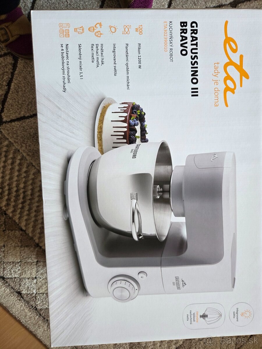 Predám úplne nový ešte nepoužitý kuchynský robot ETA 3023 90010 1200 W, záruka do júla 2032 - ďalšie info v priložených obrázkoch. Robot stál 176,30 eur + predlžená záruka 54,65 eur , robot predávame za 149 eur.