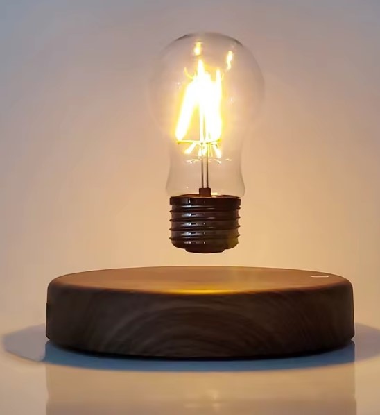 Predám nové levitujúce LED svetlo. Svetlo v tvare žiarovky sa vznáša nad magnetickou podložkou cez ktorú je aj indukčne napájané.