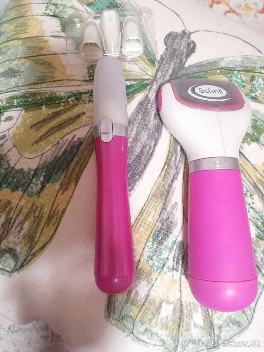 elektronický systém starostlivosti o nechty Velvet Smoot od značky Scholl. elektrický pilník na nechty s troma rôznymi hlavicami na pilovanie, brúsenie a leštenie nechtov na nohách aj rukách. Funguje na jednu tužkovú batériu (AA).