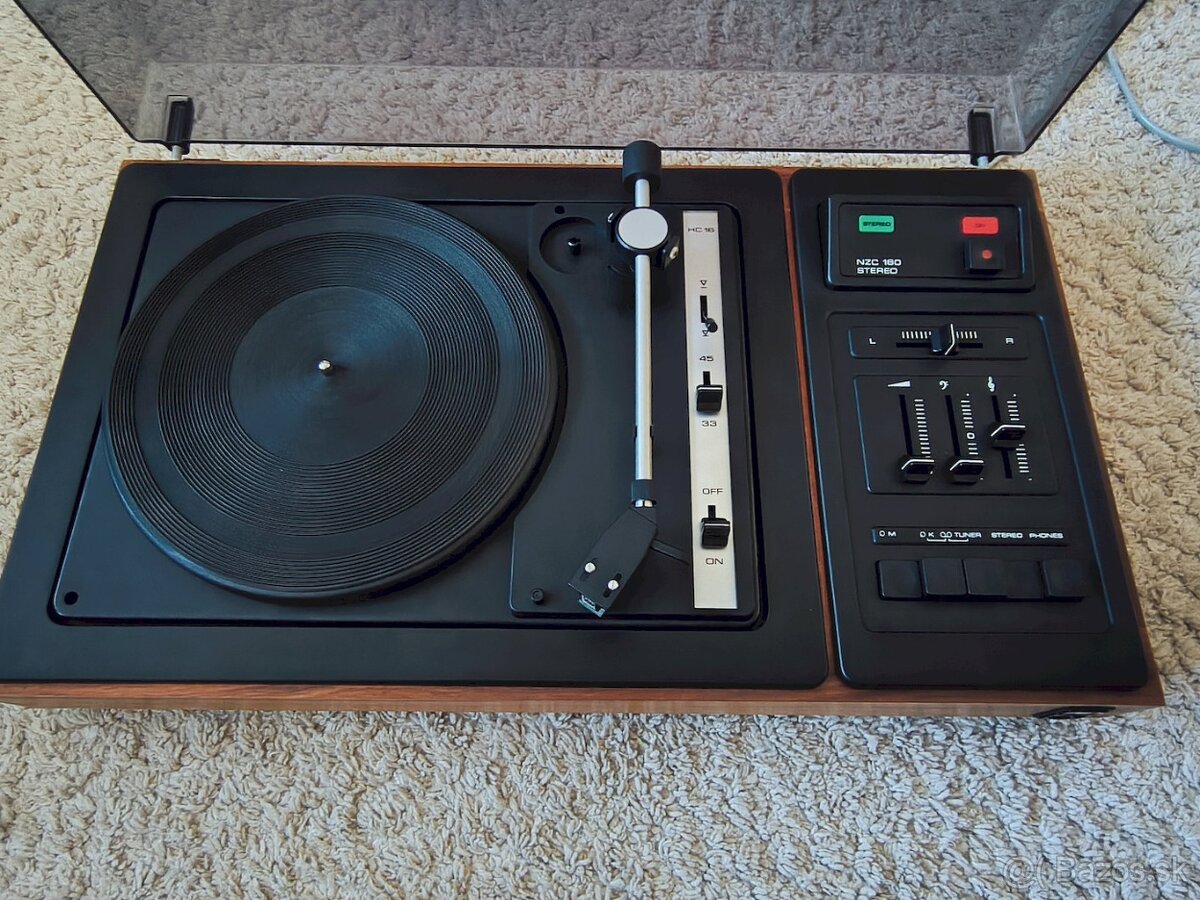 Funkčný zachovalý gramofón so zabudovaným zosilňovačom + repro. Bude zrejme potrebná výmena ihly/prenosky a gumičky pohonu. Myslím že už nie sú v najlepšej koncícii. Len osobný odber.