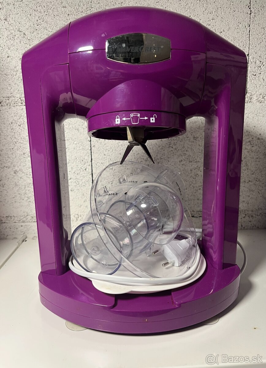 Predám SilverCrest Kitchen Tools Smoothie Maker často označovaný ako "revolverový" typ, ide o model SilverCrest SSM 180 A1. Technické špecifikácie výkon (Príkon): Tento model má zvyčajne výkon 180 W (čo napovedá aj názov modelu SSM 180). Je to nižší výkon, vhodný skôr na mäkké ovocie a tekutiny. Funguje na princípe otočného ramena – pohár sa nasadí hore dnom a mixovanie sa často spúšťa preklopením alebo pootočením celej motorovej časti (tzv. "tilting head").Objem nádob: