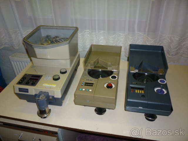 Predám počítačky mincí po repase. Dám Vám záruku 12 mesiacov, som servisný technik, takže Vám zabezpečím aj pozáručný servis. Modrý je švédsky Scan coin 303 a hnedý je japonský JCM CS-20.Sú to ešte poctivé a kvalitné stroje, žiadna čína. Parametre nebudem rozpisovať, nájdete na nete. Cena je 230 eur za kus. NEOĽUTUJETE !!