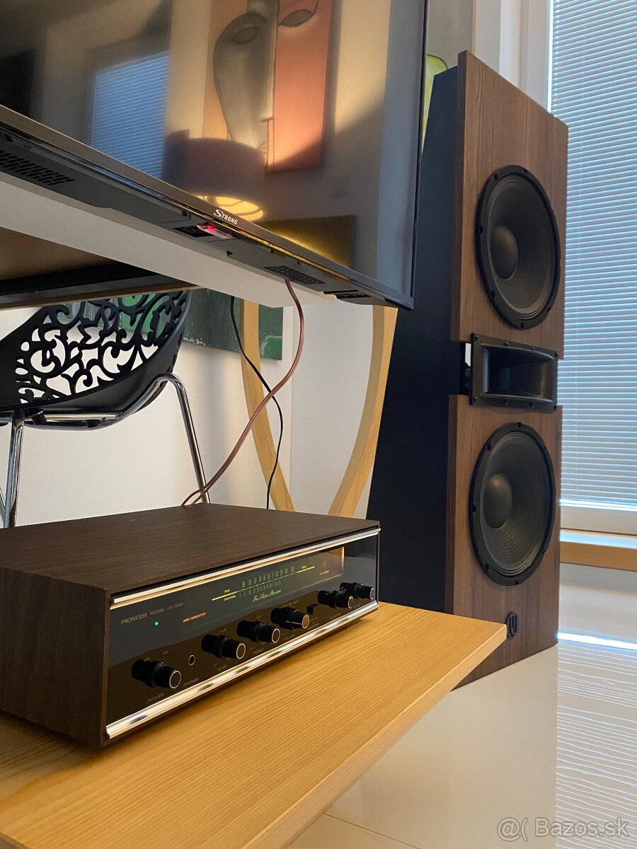 Predám úplne nové repro sústavy Open buffle 2x12” plus horn a driver vo farbe orech výška 120 cm cena 200 EUR a ďalšie reprosústavy monacor fullrange výška 140 cm cena 60 euro plus zosilňovač pioneer a10 strieborný