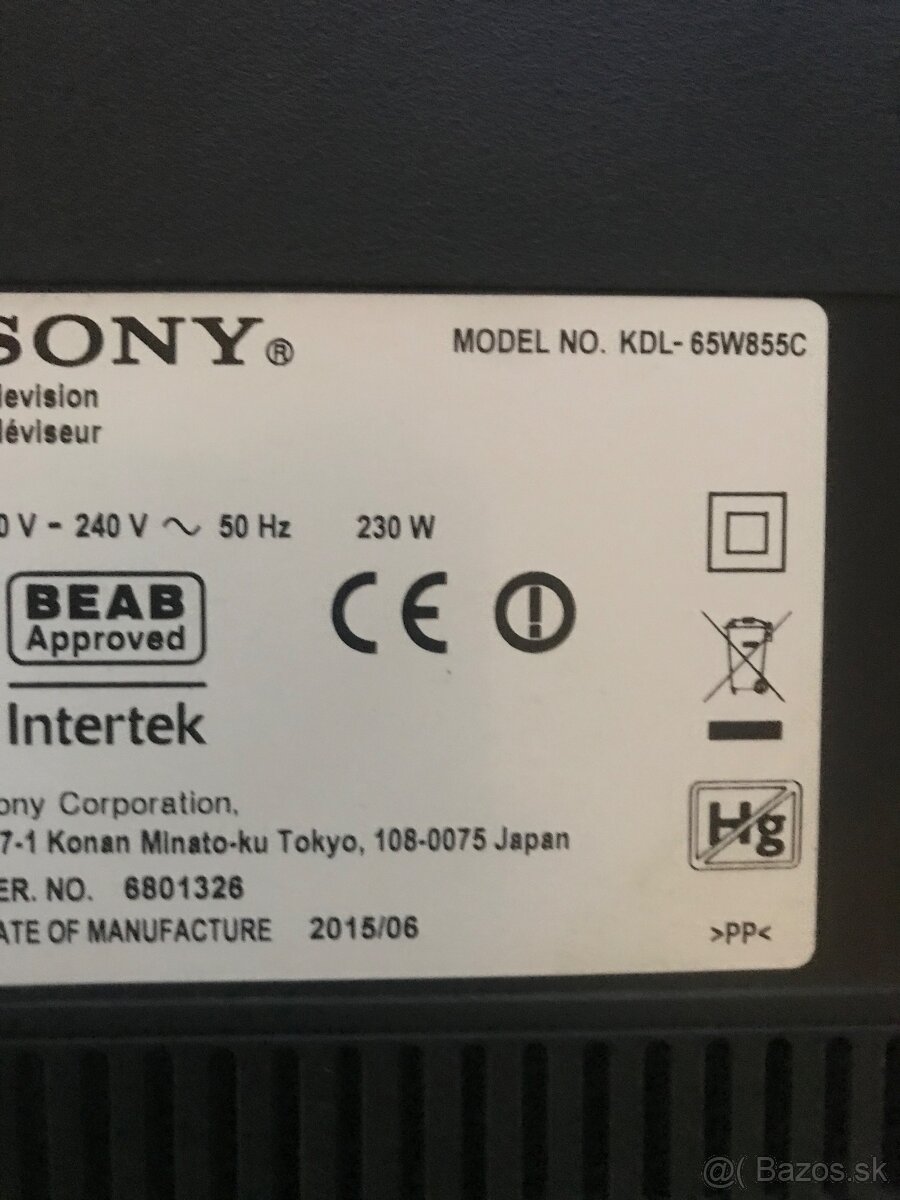 Predam Sony tv bravia KDL65W855C na diely v celku obrazovka plnene funkcna chyba je ze blikala cervena kontrolka .Iba osobne okr Medzilaborce