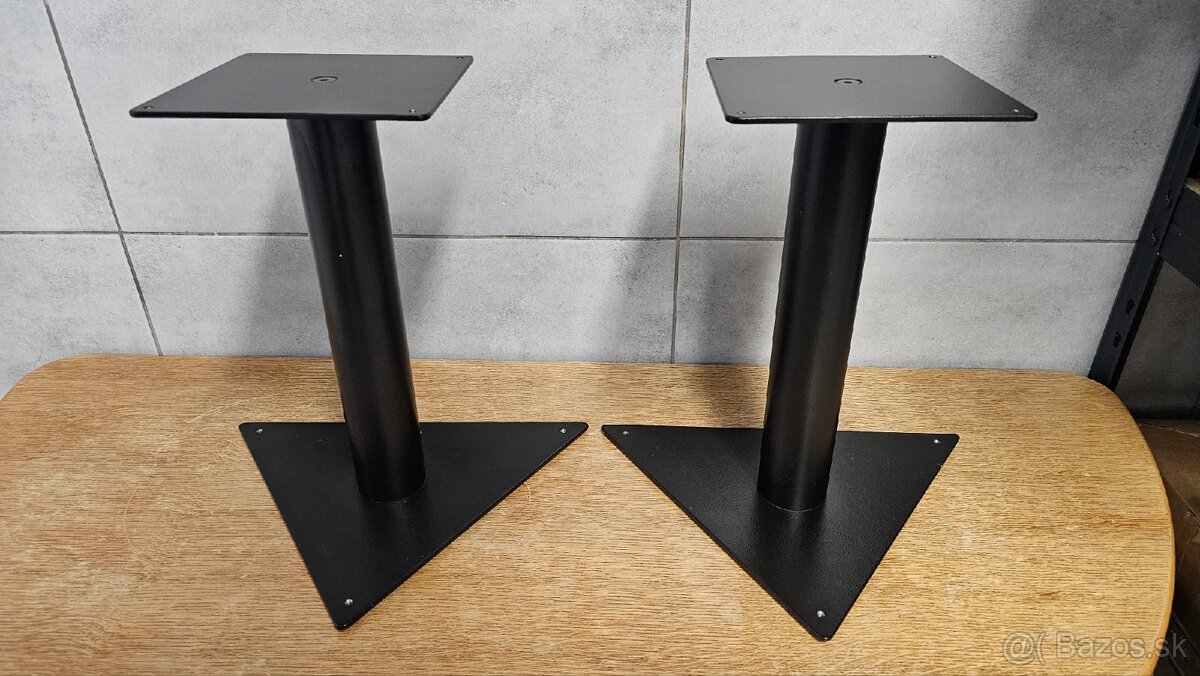 Kovové stojany pod reproduktory Benalex. Vyska 40cm, zakladna 20x20cm