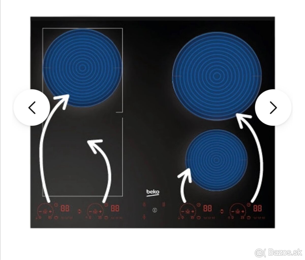 predám indukciu Beko, nefunguje pravá horná platňa, ostatné 3 platne fungujú bez problemov. Panel sa dá zapojiť na 230 aj 380V. popis: TECHNICKÉ PARAMETRE: 4 indukčné varné zóny, s priamym ovládaním Direct Access, IndyFlex - dve zóny, ktoré je možné použiť každú samostatne, alebo ako jednu obdĺžnikovú. Senzorové posuvné ovládanie, 15 úrovní 4 x Timer, 4 x Booster, Displej AutoCook funkcie: udržiavanie teploty, varenie, smaženie, pozastavenie ohrevu. Pamäť na uloženie obľúbeného nastavenia. Detský zámok Ochrana proti pretečeniu Ochrana proti prehriatiu Automatické vypnutie Inteligentná detekcia priemeru nádoby Ukazovateľ zvyškového tepla. VLASTNOSTI A FUNKCIE: Varné dosky AutoCook funkcia: Áno Bezpečnostné prvky: Áno Booster: Áno Detská poistka: Áno Prevedenie: predná skosená hrana Senzorové posuvné ovládanie: rotačný slider Luminous s podsvetlením Stop and Go: Áno Timer: Áno. Rozmery Hĺbka (cm): 5.5 Šírka (cm): 58 Výška (cm): 51