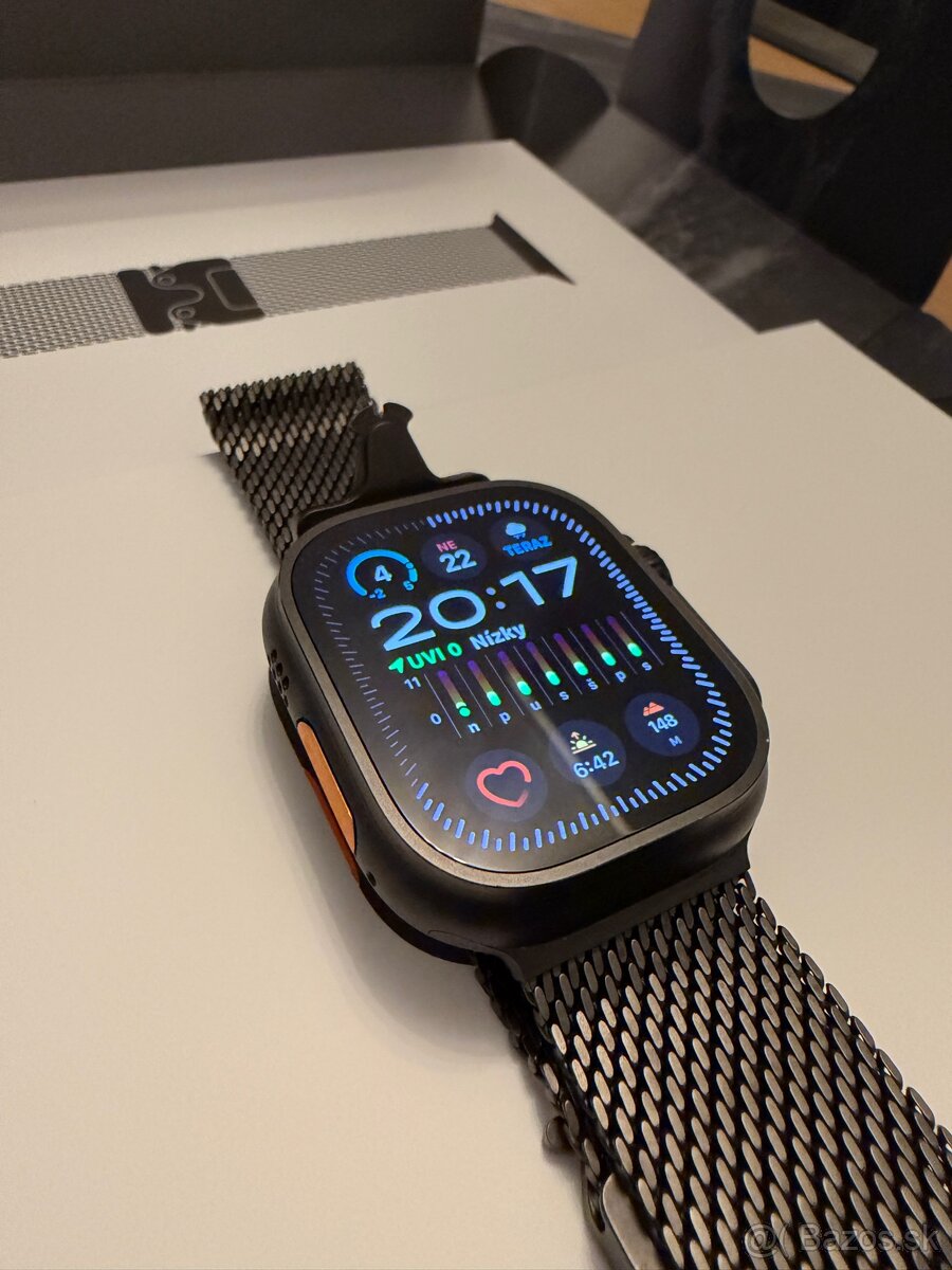 Predám svoje Apple Watch ultra 2 čierne s čiernym titanovym Milanskym remienkom velkostou M. Hodinky sú samozrejme plne