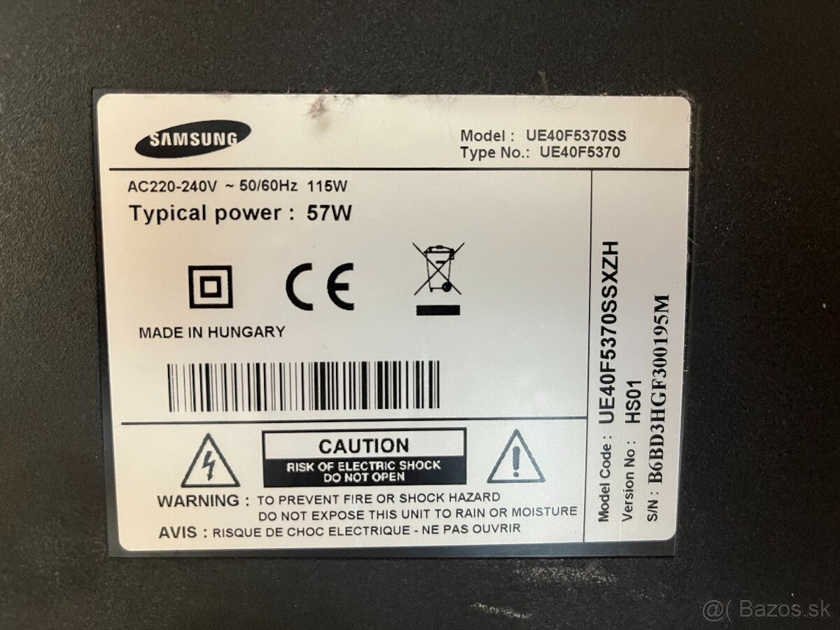Predám televízor Samsung UE40F5370SS (Type No: UE40F5370) je 40-palcový (101 cm) Smart LED televízor s Full HD rozlíšením. Je úplne funkčný málo používaný. Nemá nožičky. Bol na stene.