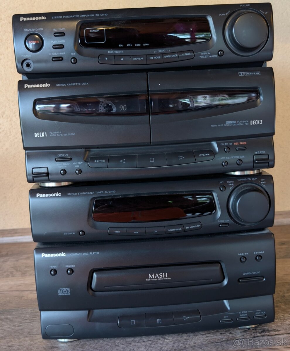 Predám funkčnú vežu Panasonic SU-CH40 bez reproduktorov v dobrom stave. CD prehrávač, dvojitý kazetový prehrávač a rádio FM a AM.
