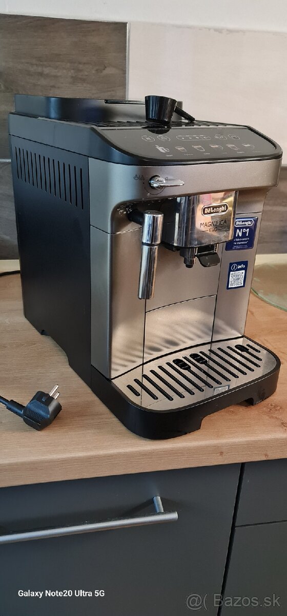 Delongi magnifica. Originál krabica, s blockom kde je zaplatená záruka ešte na ďalšie 3 roky. Kávovar malo používaný, čiže vhodný aj ako darček. Ku tomu aj plechový pohár na šľahanie mlieka.
