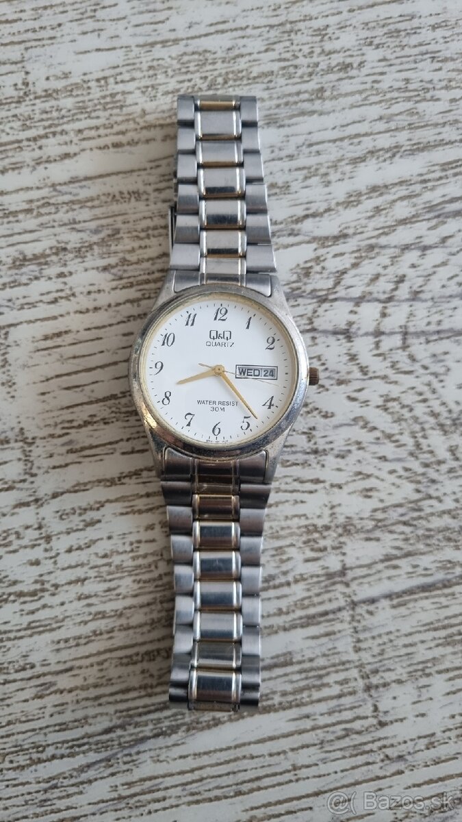 apredam tieto hodinky, jqponska vyroba. Vodotesne 30m, neposkodene, patent na naramku pevne zacvakava, ukazuju den a datum. Potrebuju novu bateriu. https://www.thewatchagency.com/qq-classic-white-steel-o34-mm-p-889241.html
