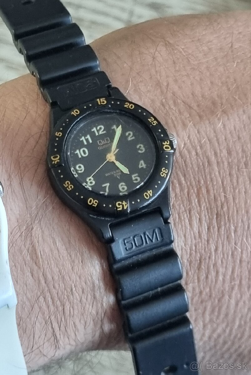 Predam tieto hodinky, japonska vyroba. Vodotesne 50m, fosforeskujuce, otocny cifernik po obvode. Potrebuju novu bateriu.