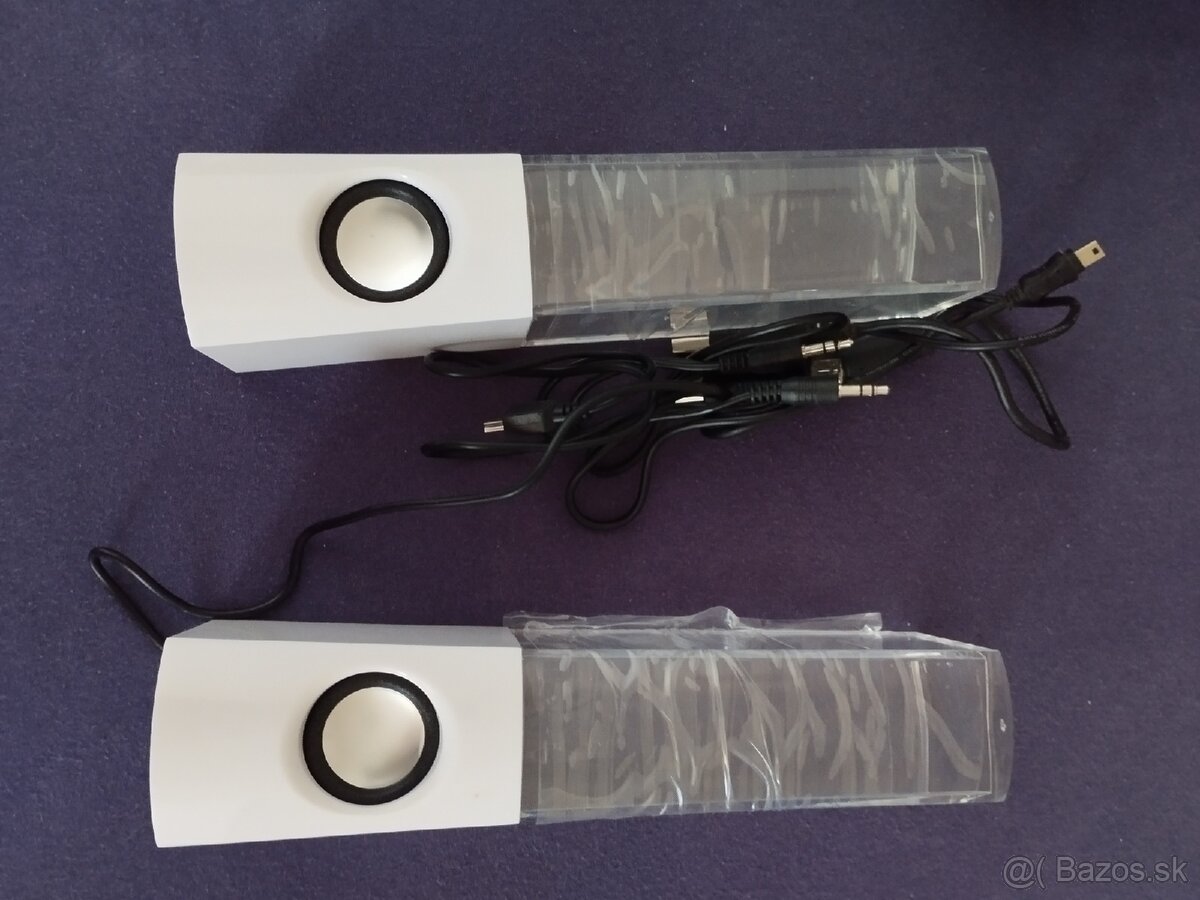 Predám reproduktory k telefónu,notebooku a podobne.Diody 4 farby a striekajuca voda podľa hudby.Repro 2x 3 wat. Na reproduktoroch je ešte ochranná folia.Ponuky poprosím na mail, číslo je vymyslené.Prefrujem osobný odber.