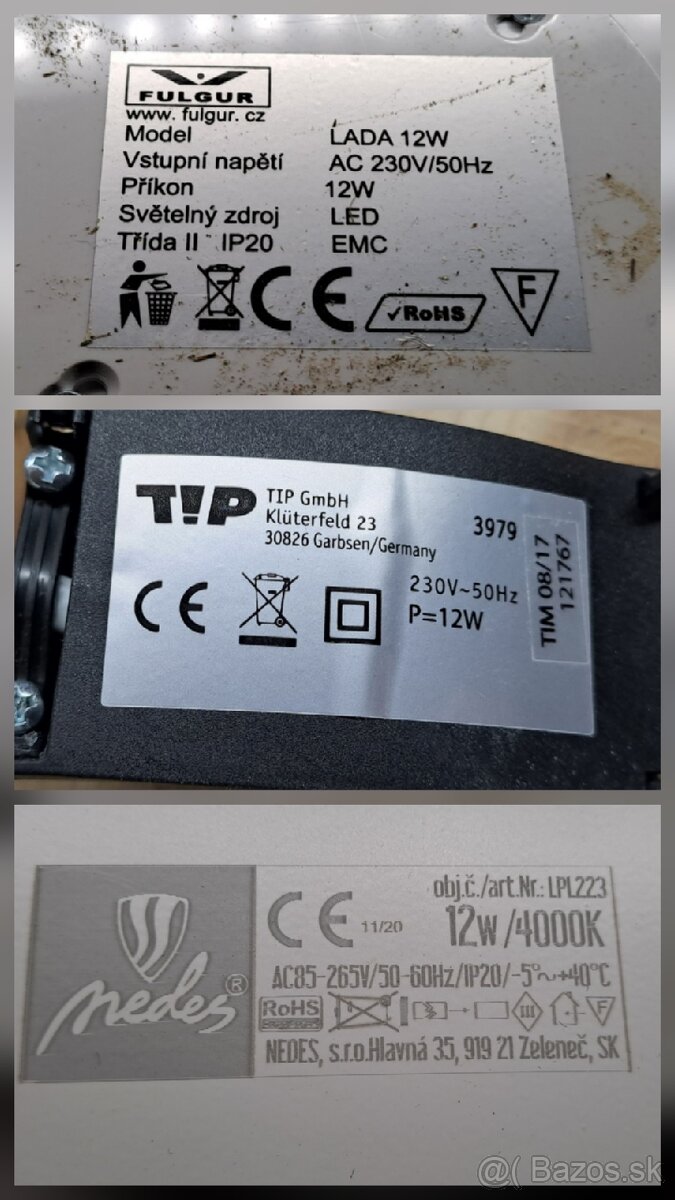 3ks LED svietidiel, 2 bezne su nepouzite, 1 s mikrovlnnym senzorom pouzivane, plne funkcne. Vsetky spolu 20€.