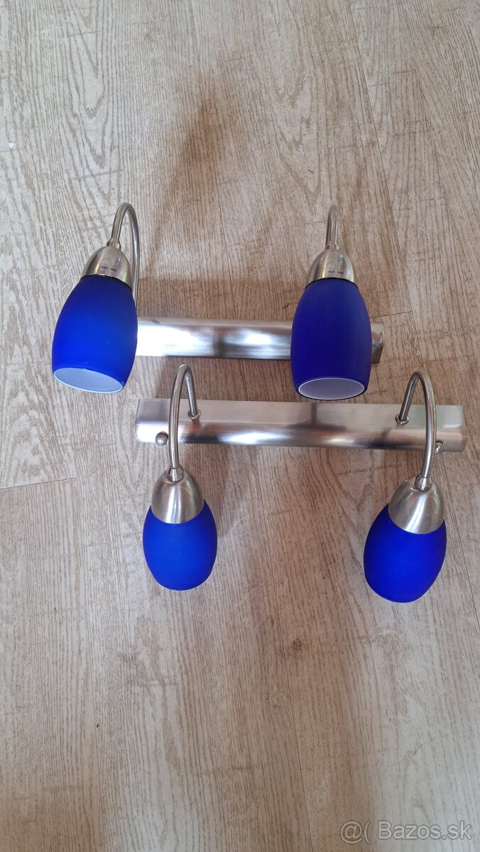 Svietidlá od španielskeho výrobcu Industrias R.C., S.A. (značka Tarsis Iluminación), model 16310. Ide o dizajnovo jednoduché, ale kvalitne spracované kovové svietidlá s modrými sklenenými tienidlami a päticou E14 (max. 40 W).