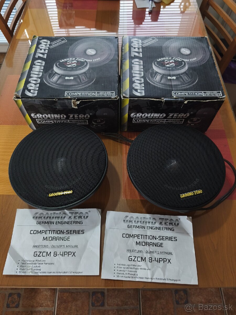 Predám pár reproduktorov 200mm Ground zero GZCM 8-4 PPX z špičkovym vykonom 200 Watt RMS -500 Watt maximum pre tych co maju radi poriadne hlasnú hudbu.Nazorná ukažka ako hraju. https://youtu.be/ncfBmiP-N6k?si=3yI7xOMpdYcWH-mJ Na sms neodpovedám len volať.Cena za kus 80 eur.